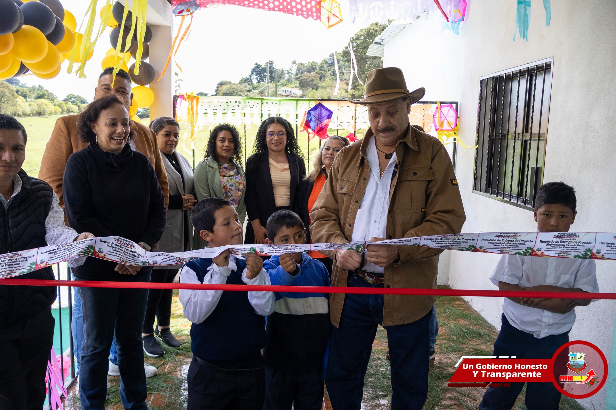 El señor Alcalde Municipal llevó a cabo el corte de la cinta simbólica en un emotivo acto de inauguración de la entrega del entorno virtual en la escuela rural de Aldea La Esperanza. Este significativo proyecto beneficiará a los niños y niñas de la comunidad, proporcionando más de 36 computadoras que servirán para acercar la tecnología a cada uno de ellos.